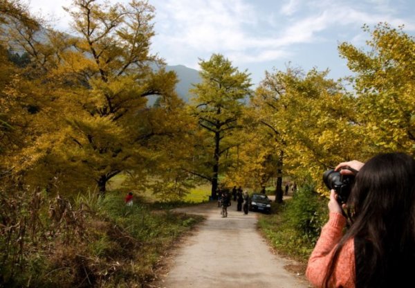 去年,去了广西的海洋乡,冬来得太晚,银杏叶尚未金黄。