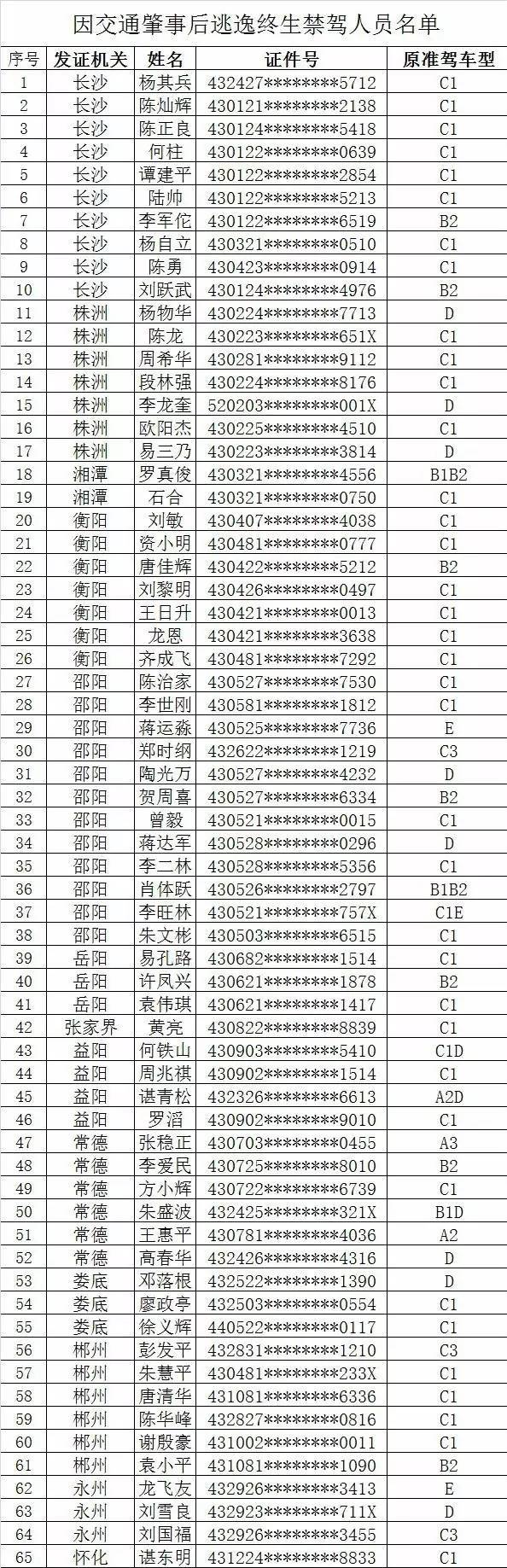 湖南公布一批终生禁驾名单 永州有5人